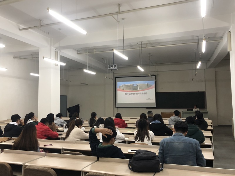 2019-2020学年第一学期第一期学术沙龙活动由刘莉同学主持,活动的主题主要是给大家分享一些在期刊论文写作中的小经验。刘莉同学从论文撰写前的准备工作、论文撰写中、投稿三大方面进行了经验分享,并鼓励大家要摆正心态争取多出成果。此次会议让同学们收获颇深,在活动结束时刘莉同学也赢得了大家的阵阵掌声。