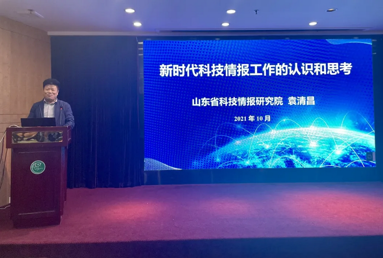 山东省科学技术情报研究院党委书记、院长袁清昌以《新时代科技情报工作的思考》为题,梳理回顾了我国科技情报事业的发展历程,详细介绍了山东省科技情报工作的发展现状,展望了科学技术情报工作的发展前景,并剖析了未来科技情报工作的重点任务。