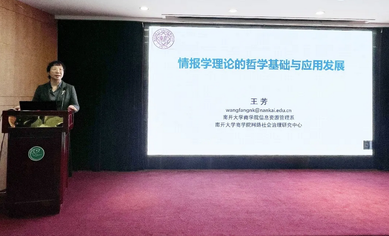 南开大学网络社会治理研究中心主任、南开大学战略发展部副部长、教育部青年“长江学者”王芳教授作了题为《情报学理论:哲学基础与应用发展》的报告,强调了理论在学术研究中的重要地位,分享了学术研究的两大范式,并深入探讨了情报学理论研究的哲学基础和发展趋势。