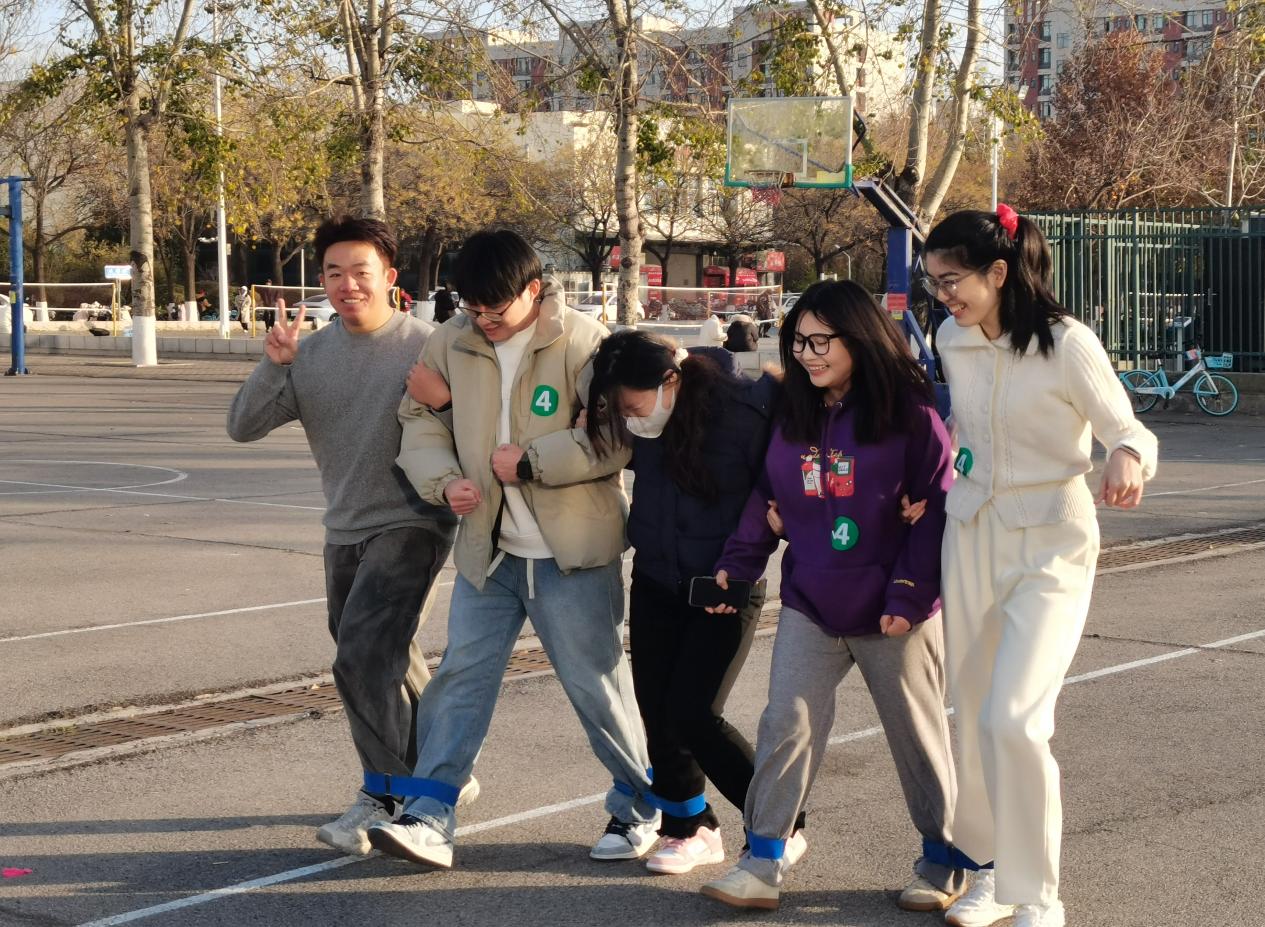 本次趣味运动会设置乒乓球传递、投篮、摸石头过河、指压板跳绳、踩气球、五人六足六大项目,每个项目都成为检验团队协作的生动载体。乒乓球传递赛道上,选手们单手握拍、眼神专注,小心翼翼控制球拍平衡;投篮区里,选手们轮流上阵,精准命中引发阵阵欢呼;摸石头过河项目中,队员们围在一起出谋划策,合理分配“石头”位置,前进时手脚交替、互相照应;指压板跳绳区,脱鞋上阵的同学们在痛感中咬牙坚持,队友们围圈呐喊计数,让“痛并快乐着”的挑战充满温暖;踩气球项目里,大家你追我赶却不失分寸,追逐中带着欢声笑语;五人六足赛道上,各队齐声喊着“一二、一二”的口号,绑腿同步前进,齐心协力向终点迈进。